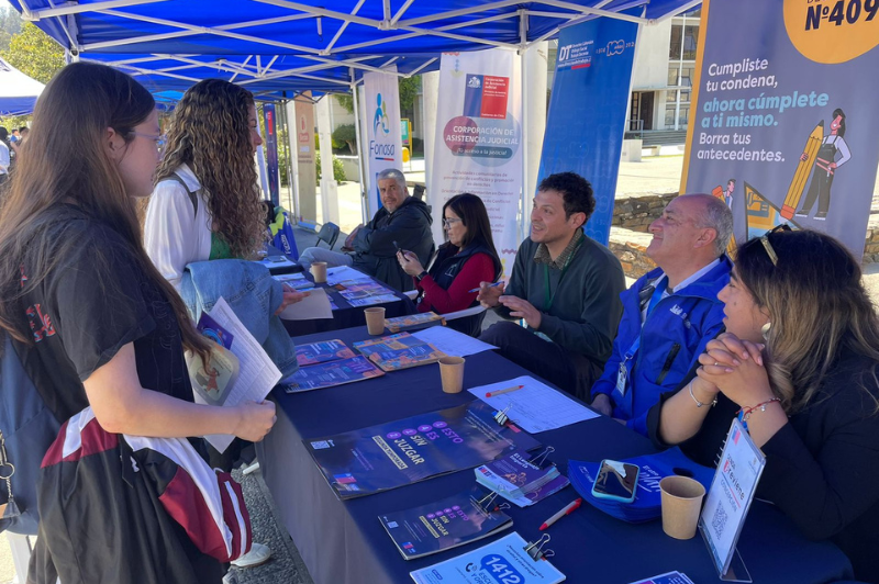La feria, desarrollada durante la mañana en la Plaza del Estudiante, reunió a estudiantes, académicos, académicas y personal de la Universidad, quienes pudieron resolver dudas y realizar gestiones acompañados por representantes de diversos organismos públicos. Entre ellos, la Corporación de Asistencia Judicial, el Servicio Nacional para la Prevención y Rehabilitación del Consumo de Drogas y Alcohol (SENDA), el Servicio Nacional de Capacitación y Empleo (SENCE), la Junta Nacional de Auxilio Escolar y Becas (JUNAEB), el Servicio Nacional de Pesca y Acuicultura (SERNAPESCA), el Fondo Nacional de Salud (FONASA) y la Seremi de Salud, entre otros. Además, participaron con stands informativos el equipo de Bienestar Estudiantil de la DISE y el Voluntariado de la Dirección de Vinculación Social.
